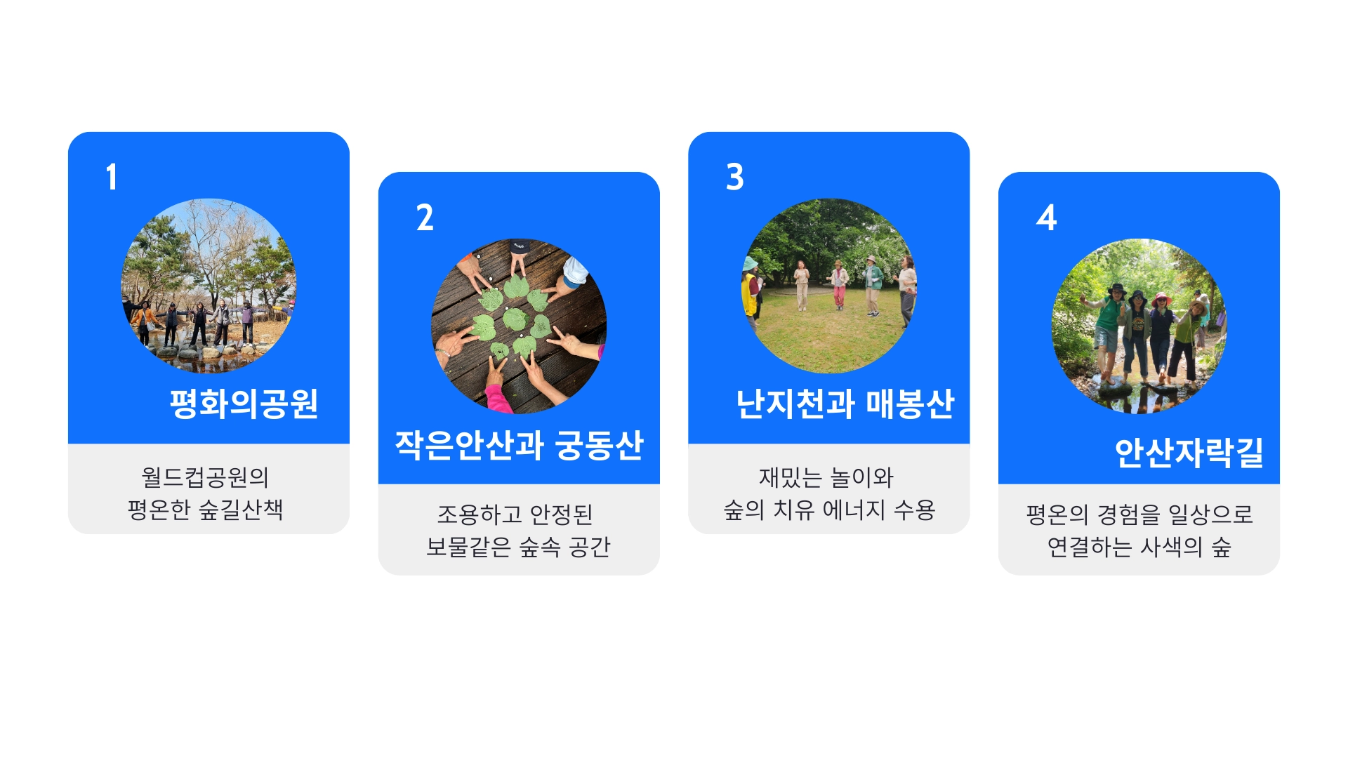 서울 서북부 (은평, 서대문, 마포, 종로) 도시숲에서 만 55세 이상의 건강취약계층을 대상으로 하는 숲체험 지원사업입니다. 만 55세 이상 선착순이며 참가비는 없습니다.